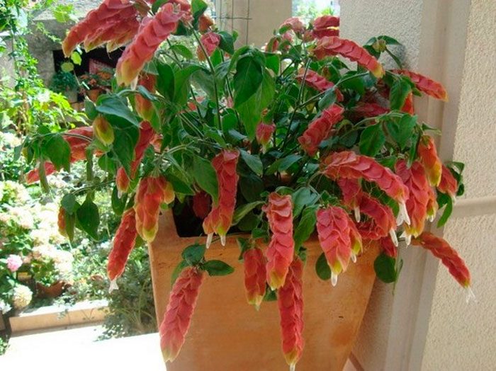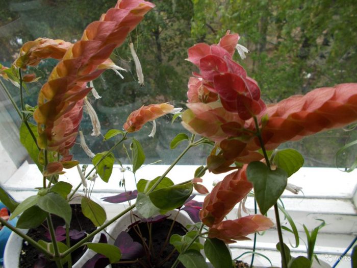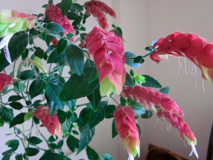 Белопероне – представник сімейства Акантові. Цей дивовижний вічнозелений чагарник має незвичайні суцвіття, що нагадують креветку. Жовто-рожеві, оранжево-червоні і бурі пониклі приквітки закривають білі квітки. У природному середовищі чагарник досягає висоти до одного метра. Белопероне багато людей називають кімнатних хмелем за схожість приквітків з шишечками хмелю. Рослина має опущені листя і стебла. Мексика – батьківщина яскравої красуні. Своїм власникам вона не пред'являє особливих вимог. В домашніх умовах вирощують один вид – белопероне крапельну. Рослина невибаглива, виростити його можуть навіть початківці квітникарі. Його відмінною рисою є тривале цвітіння.
