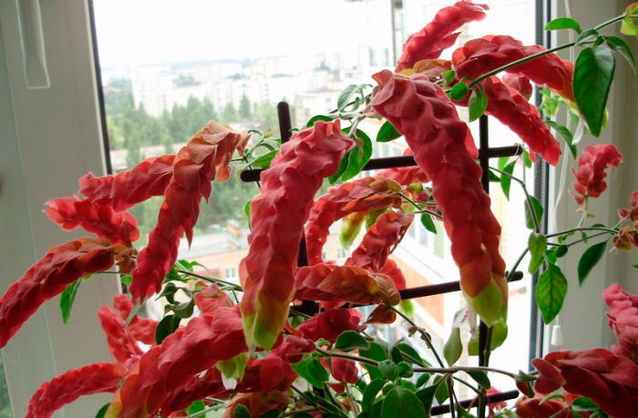 Белопероне відноситься до невибагливим кімнатним рослинам. Цей чудовий квітка прикрасять будинок і буде радувати своєю красою весь рік. Незважаючи на тривалий період цвітіння, рослина не завдасть клопоту. У літній період кімнатний хміль любить перебувати на свіжому повітрі, тому краще винести його на балкон. При цьому необхідно захищати екзотичний чагарник від палючих променів сонця.