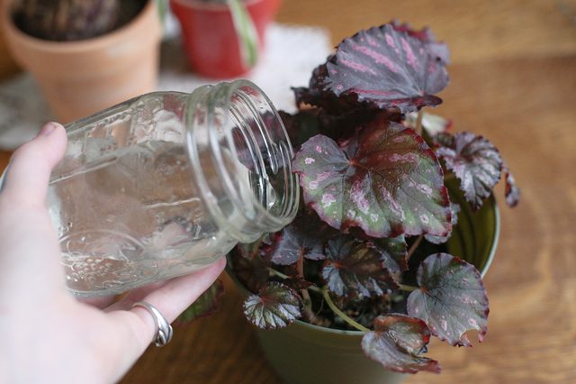 Поливати бегонію, особливо в літній період, слід рясно, інакше вона не зможе пережити пересохлу грунт. Як тільки зовнішній шар грунту в горщику починає пересихати, бегонію потрібно відразу ж полити.