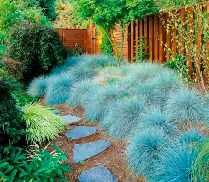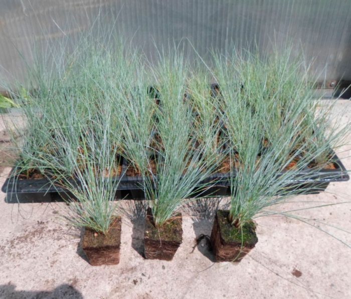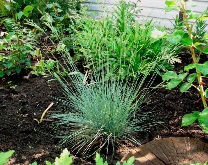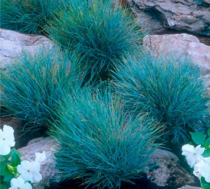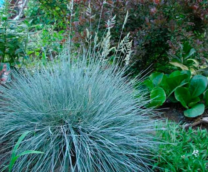 - блакитна купина ― густий кущ прикрашає велика кількість вузеньких листових пластин голубувато-зеленого кольору;
