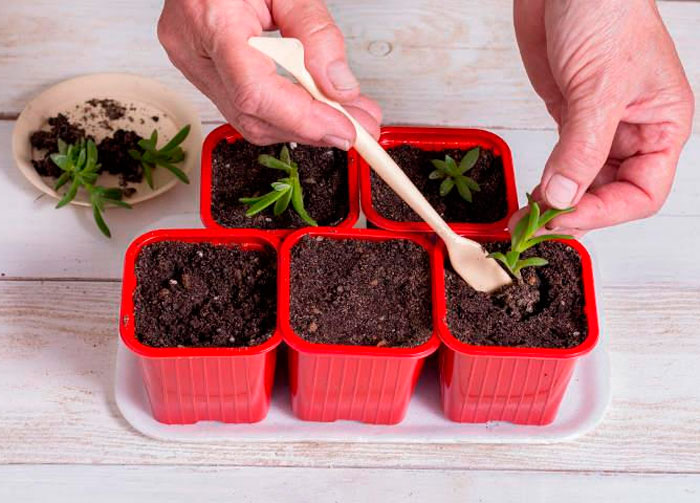 Відріжте від втечі ділянку з корінням і листям. Одержаний живець можна відразу ж посадити в квітник або індивідуальний горщик. Він швидко прийметься і рушить в зростання.