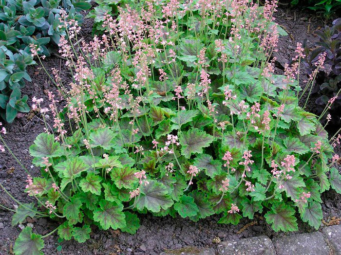Листові пластини мають розсічену форму, ніж вони сильно схожі на листя клена. У частини видів в літній час утворюються маленькі квітки світлого забарвлення. Середня висота такого рослини близько 50 див. Найбільша висота гейхереллы ― близько 0,7 м, але це разом з волотисті суцвіттями, що підносяться над листям.