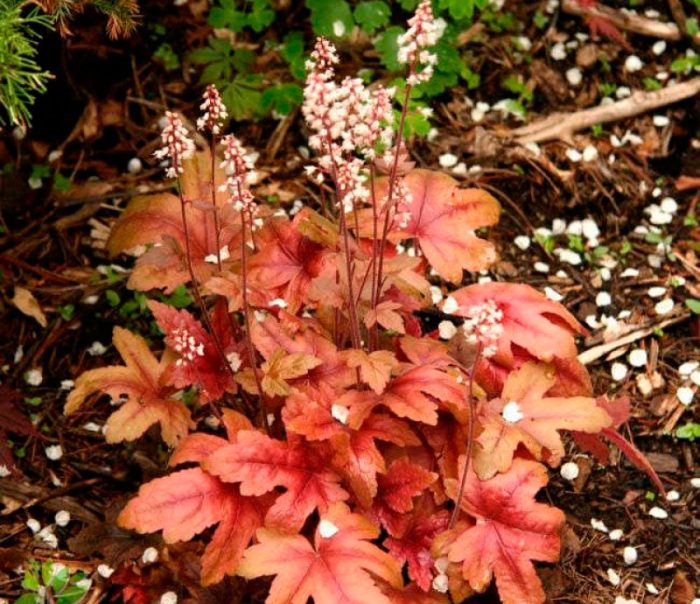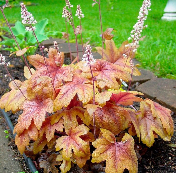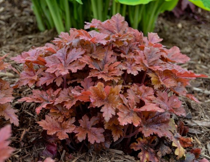 Це компактна рослина відрізняється карамельно-рудим відтінком. В поперечнику воно досягає не більше 30 сантиметрів, при цьому його висота варіюється від 15 до 20 сантиметрів. Найкращим місцем для його вирощування вважається мереживна тінь великих дерев. Навесні листя пофарбована в червоний колір, а восени він змінюється на бордовий. Це рослина чудово підходить для рокаріїв і бордюрів, а ще вона чудово виглядає разом з геранями, хостами і іншими сортами гейхереллы.