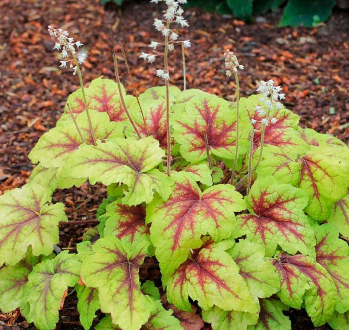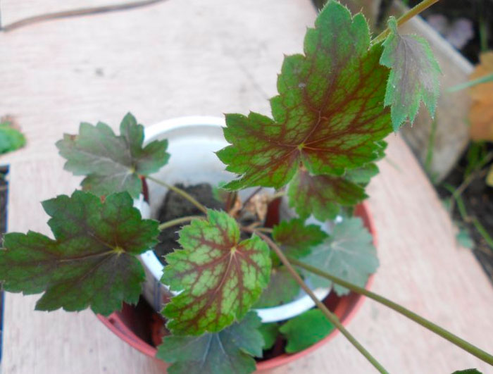Такий кущик краще всього виглядає на тлі відкритого грунту коричневого забарвлення. Зелені пластини прикрашають жилки вогненно-червоного відтінку.