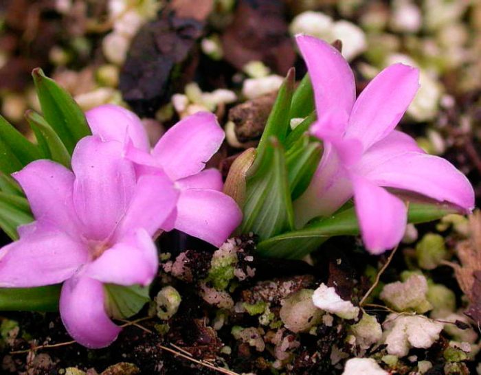 Висота такого унікального карликового рослини не досягає навіть 10 сантиметрів. Листя вузька довга. Квітки мають виражену фіолетовим відтінком.