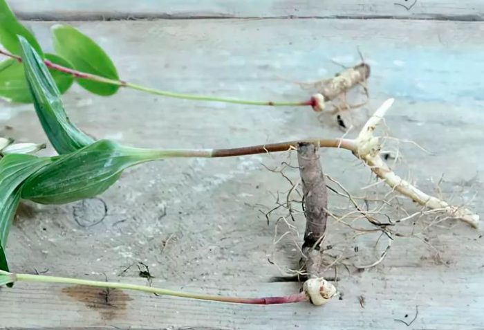Набагато простіше і швидше розмножити таке рослина діленням куща. Як правило, процедуру проводять в останні літні або перші осінні тижні. Деякі садівники ділять розрослися кущики в весняний час, після того як їх стебла рушать в зростання. При цьому слід врахувати, що розмножуючи таким чином купену навесні, можна легко травмувати молоді паростки.