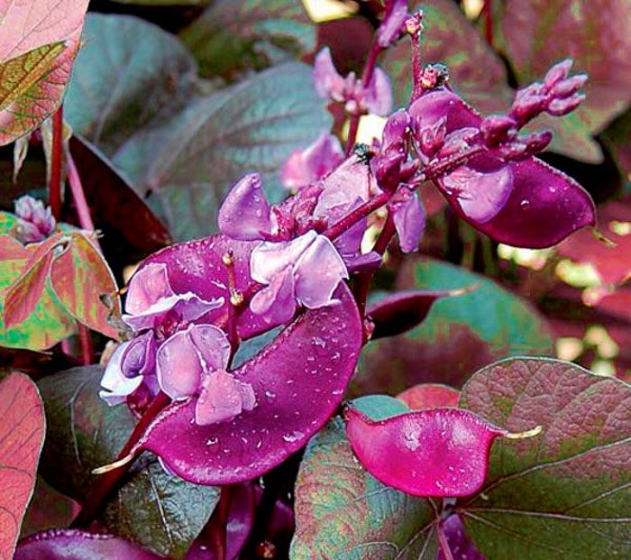 Цю трав'янисту декоративну ліану культивують в якості однолетника. Довжина пагонів близько 300 см, вони прикрашені великими серцеподібним листовими пластинами, що мають загострену верхівку. Пофарбовані листя зеленого кольору з фіолетово-червоним відливом. Запашні довгі кисті складаються з квіток рожевого, фіолетового, білого або малинового забарвлення. Цвітіння спостерігається в середині літнього періоду, а після його закінчення на кущі з'являються стручки з їстівними бобами.