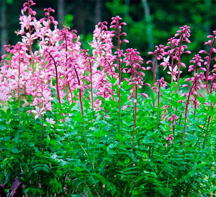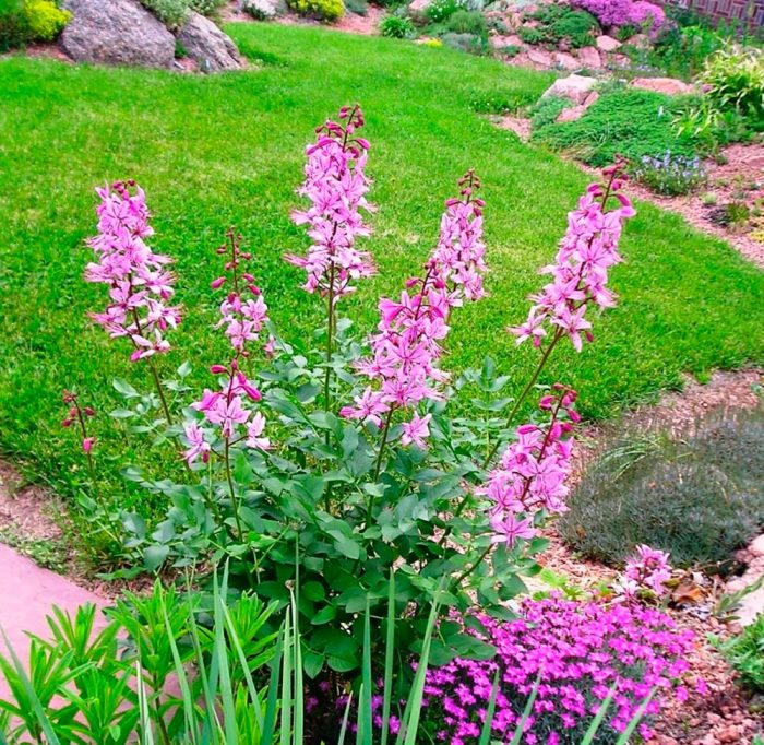 - якщо правильно підібрати рослини, то ясенець можна використовувати в створенні ефекту естафетного цвітіння;