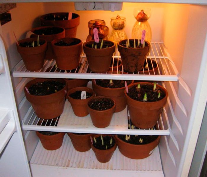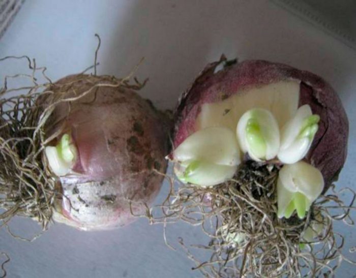 - Зберігання. На зберігання цибулини прибирають в добре провітрюване приміщення з помірною вологістю. Їх укладають в пакети з паперу або в 2 шару в ящики. Два перших місяці посадковий матеріал зберігають при температурі близько 25 градусів, а потім його переносять в більш прохолодне місце (приблизно 17 градусів).