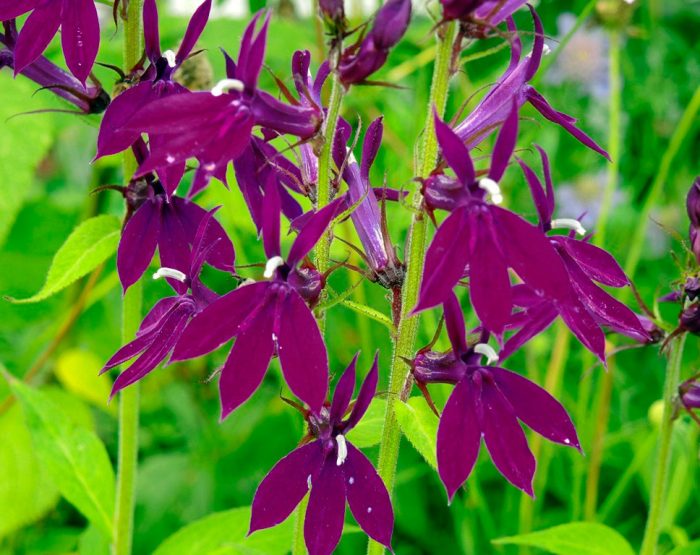 Або лобелія пурпурова, або лобелія кардинальська. Висота куща близько 100 див. Вигляд так був названий за забарвлення квіток, його королева Англії Генрієтта-Марія порівняла з кольором панчіх кардинала Рішельє.