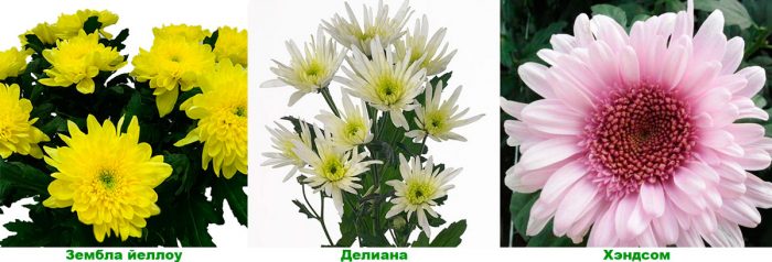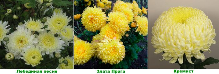 - Зембла єллоу. Цвітіння починається у вересні. Великі кулясті суцвіття жовтого забарвлення досягають в поперечнику близько 15 сантиметрів.