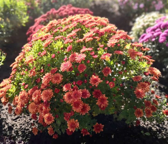 - Мультифлора. Цей сорт з'явився не так давно, але вже став дуже популярний серед садівників. Культивувати його можна і в саду, і в горщику або контейнері. Цвітіння починається порівняно рано (іноді в серпні). Форма суцвіть куляста, а пофарбовані вони можуть бути самі різні кольори.