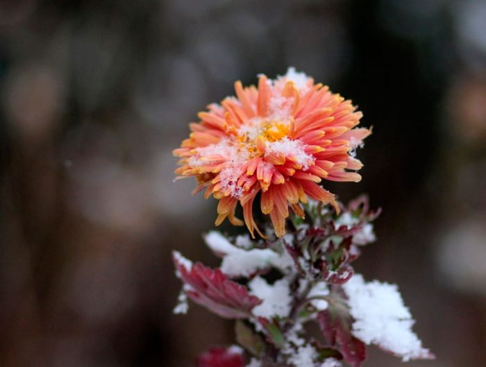Для того щоб підвищити морозостійкість кущів, у перші осінні тижні їх в останній раз за сезон підживлюють фосфорно-калійними добривами. Відразу ж після перших заморозків у багаторічних хризантем, що зимують у відкритому грунті (в першу чергу увагу слід звернути на сорти корейських хризантем з маленькими суцвіттями), вкорочують наземну частину до 10-15 сантиметрів від поверхні грунту. Потім кущики добре підгортають, а поверхня ділянки засипають товстим шаром (від 0,3 до 0,4 м) облетіла сухого листя. В регіонах з дуже морозними і малосніжними зимами мульчуючий шар зверху закидають лапником або хмизом. Пам'ятайте, що вкривати рослина матеріалом не пропускає повітря вкрай небажано, тому що кущики можуть під ним пріти.