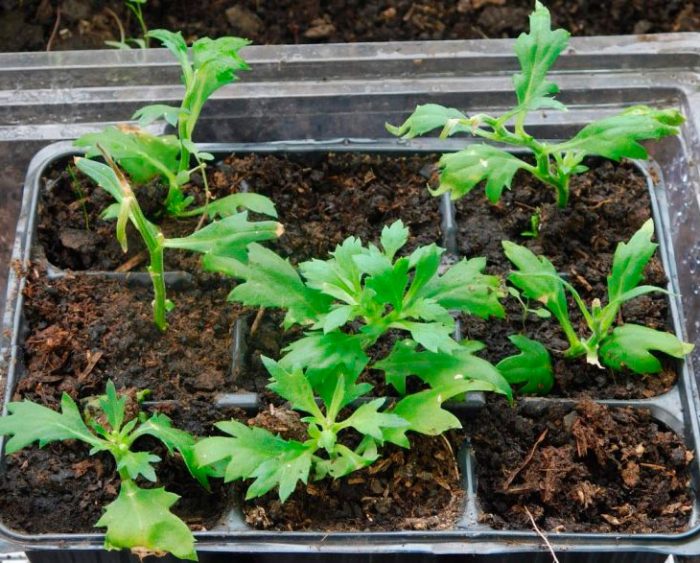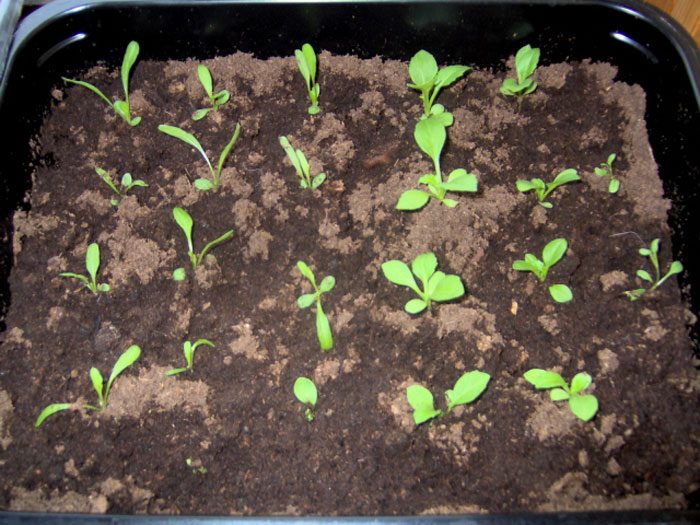 Для вирощування розсади знадобляться невисокі горщики, заповнені субстратом, до складу якого входять перегній, парникова земля і торф (1:1:1). Грунтосуміш можна придбати в спеціалізованому магазині, там вона пройшла вже дезінсекцію та дезінфекцію. Приготовлений своїми руками субстрат обов'язково просівають і прожарюють при температурі від 110 до 130 градусів. На дні скриньки спочатку роблять хороший дренажний шар з керамзиту або шматочків цегли. Його засипають підготовленим субстратом, а на його поверхні рівномірно розподіляють насіннєвий матеріал. При посіві насіння багаторічників, їх не засипають зверху, а лише злегка вдавлюють в грунтосуміш. А при висіві однорічників насіннєвий матеріал зверху присипають підлозі сантиметровим шаром субстрату. Полийте посіви за допомогою обприскувача теплуватою водою і зверху укрийте ємність плівкою (склом). Приберіть посіви в тепле місце (від 23 до 25 градусів), систематично провітрюйте їх і зволожуйте субстрат з пульверизатора, не допускаючи його пересихання. Якщо все зробити правильно, то перші сіянці повинні будуть здатися через 10-15 днів після посіву. Як тільки це відбудеться, ящик переставляють в добре освітлене місце. Укриття прибирають не відразу, а поступово, щоб рослинки встигли звикнути до нових умов. Для початку укриття прибирають на 1 годину, потім на пару годин і так далі, поки рослинки не звикнуть до нових умов зростання.