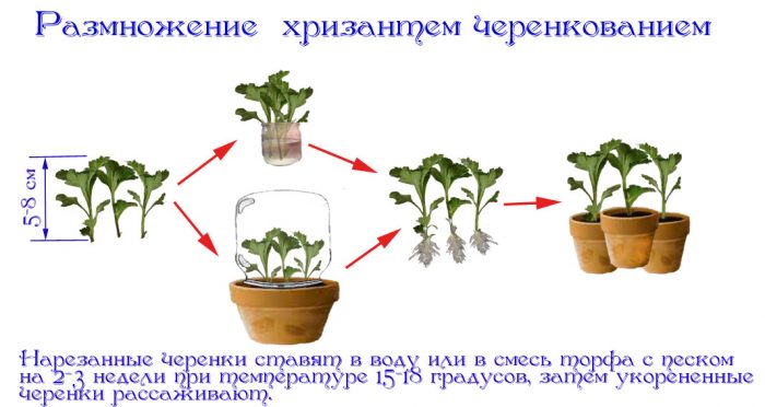 Культуру також можна розмножити живцями. Їх заготівлю проводять у весняний час після того, як вдень повітря прогріватиметься до 21-26 градусів, і минуть поворотні весняні заморозки. Для цього використовують гострий простерилизованный ніж, яким зрізують черешки з дорослого куща, при цьому використовують ті стебла, що ростуть від кореня квітки, бічна поросль для цієї мети не підійде. Держак повинен досягати в довжину від 60 до 70 мм, а зріз роблять на кілька міліметрів вище нирки з листом. У живця нижній кінець обробляють засобом, стимулюючим зростання, наприклад, корневином. Після цього його висаджують в контейнер під нахилом до 35-45 градусів, який наповнюють зволоженою родючої почвосмесью, зверху присипають її двухсантиметровым шаром піску. Висадіть живці таким чином, щоб вони знаходилися тільки в піску, не стикаючись при цьому з субстратом. На час вкорінення живці ставлять на добре освітлений підвіконня, при цьому стежать, щоб субстрат в ємності був весь час злегка влажноватым. Оптимальна для вкорінення температура повітря від 15 до 18 градусів. Якщо все зробити правильно, то коріння відросте через 15-20 днів, після чого проводять пересадку живців у відкритий ґрунт.