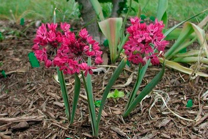У такого низькорослого рослини величина цибулин лише трохи більше розміру горошини. Висота кущика варіюється від 10 до 20 сантиметрів. До складу суцвіть входить від 30 до 40 квіток насиченого пурпурно-рожевого забарвлення і ширококолокольчатой форми. Зацвітає кущ в останні весняні тижні, а тривалість цвітіння ― від 3 до 4 тижнів.
