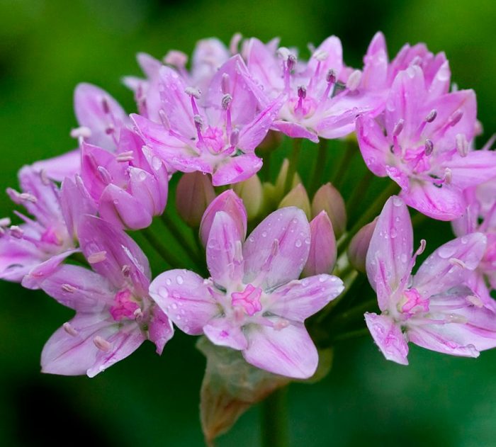 Висота кущика може сягати від 25 до 30 сантиметрів, його прикрашають рожево-сірі суцвіття зірчастої форми. Зацвітає рослина в червні. Воно зовсім не схоже на цибулю, і визначити те, що аллиум Шуберта є його родичем під силу тільки професіоналові.