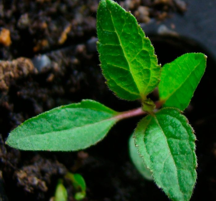 Укриття з ємності прибирають тільки після того, як з'явилися сходів почнуть формуватися справжні листові пластини. Пікіровку рослинок проводять під час формування у них першої пари справжніх листових пластин. Для цього використовують торф'яні стаканчики, які потрібно наповнити субстратом (його склад описано вище). Пикированные квіти слід перенести в досить прохолодне місце (від 13 до 15 градусів). Доглядати за такою розсадою дуже просто, для цього її треба своєчасно поливати, а також систематично акуратно спушувати поверхню землесуміші.