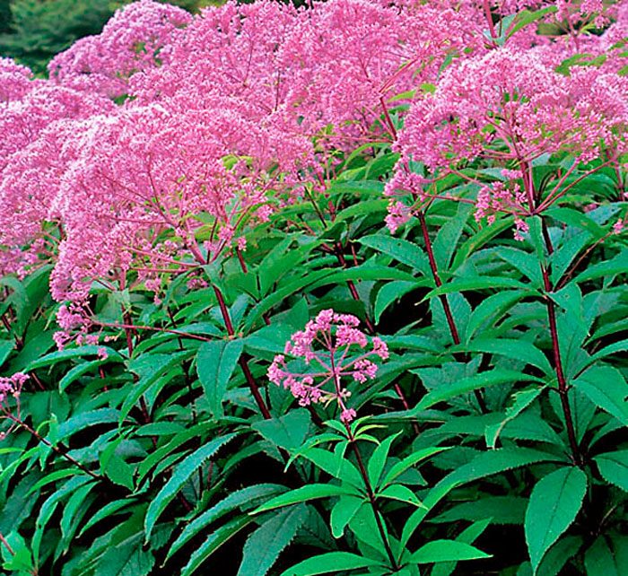 - Літтл Джо. На кущах метрової висоти виростають суцвіття, що складаються з маленьких квіток попелясто-рожевого відтінку.