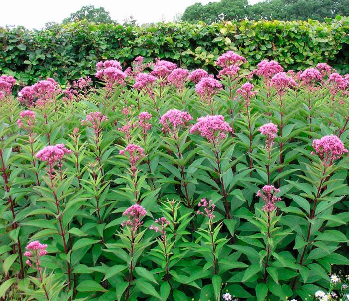 - Атропурпуреум. Стебла темно-червоного кольору у висоту досягають до 2 м. Забарвлення квіток фіолетово-рожевий.