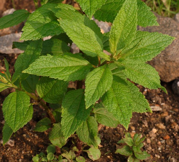 На відміну від інших видів такої сідач має супротивнорасположенными листовими пластинами овальної форми, а також зубчастої кромкою. Забарвлення суцвіть білий. Кращими сортами такого виду є:
