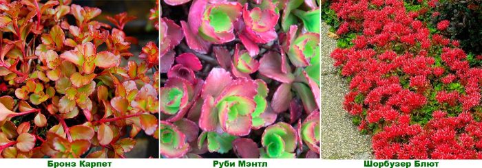 - Бронз Карпет ― забарвлення суцвіть рожевий, листові пластини до осені стають бронзовими;