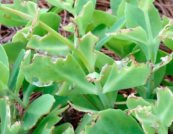 Або очиток лікарський, або очитник телефиум (Hylotelephium triphyllum), або очиток пурпуровий (Sedum purpureum), або бобова трава, або вороняче сало, або жива трава, або заяча капуста.