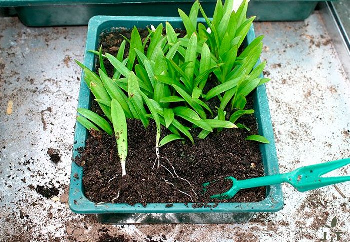 Під час висадки цибулинки в залежності від величини необхідно заглиблювати у грунт на 25-35 мм, при цьому відстань між кущами має бути не менше 15 сантиметрів, а ширина між рядами ― від 0,3 до 0,4 метрів.