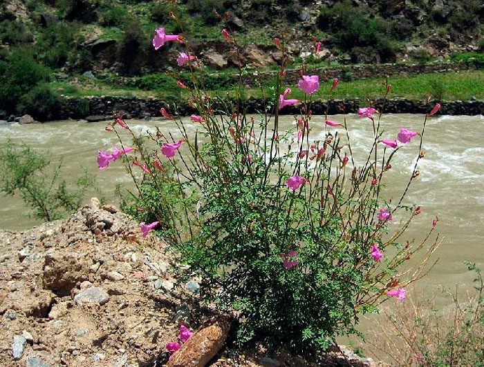 Родом такий вид з Паміро-Алая. Це багаторічна рослина, що у висоту досягає близько півтора метрів. Голі стебла у верхній частині розгалужені, вони іноді дерев'яніють біля основи. Супротивнорасположенные листові пластини мають перисто-розсічену форму. Листя, що ростуть у верхній частині стебла, мають цілісною формою. Нещільне верхівкове волотисте суцвіття форми в довжину досягає близько 0,25 м, воно складається з рожево-червоних квіток, в діаметрі досягають 20 мм. Зацвітає рослина в перші тижні липня, а тривалість цвітіння близько семи тижнів. Даний вид не відрізняється високою морозостійкістю, тому при вирощуванні в середніх широтах кущики необхідно обов'язково вкривати. Культивується з 1880 р.