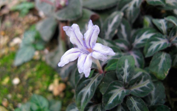 Це теж трав'яниста багаторічна рослина. Воно має сильно ветвящимся стеблом. У висоту вона виростає до 35-40 сантиметрів. Має поодинокі квіточки, які можуть бути пофарбовані в білий або бузковий колір, а посередині кожної частки красуються лілові смужки. Цвітіння рясне, спостерігається в осінньо-зимовий період.
