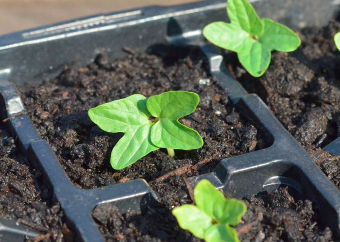 Невеликі стаканчики потрібно заповнити відповідним субстратом, після чого в них укладають по 2-4 насінини, зверху ємності треба накрити плівкою або склом, в результаті вийде своєрідна міні-тепличка. При необхідності поливайте посіви, влаштовуйте їм регулярні провітрювання, прибирайте конденсат з укриття, а також підтримуйте температуру повітря в межах 18-20 градусів. Якщо все робити правильно, то перші сіянці повинні будуть здатися через 10-12 діб.