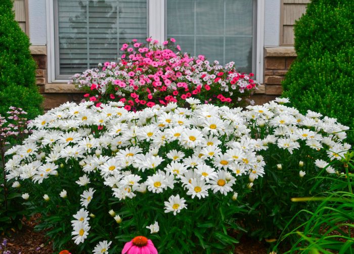 - Максима Кеніг. Висота куща близько 100 см. В діаметрі суцвіття досягає 12 сантиметрів, воно складається з серединних трубчастих квіточок темно-жовтого забарвлення, а також 1 або 2 рядів язичкових білих квіточок.