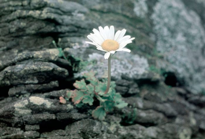 Даний вид є курило-северояпонским эндемом. Ця скельна ромашка цвіте пізно, а родом вона з східно-азіатських островів Хоккайдо, Курили і Хонсю. Це багаторічна рослина, що у висоту досягає всього 0,2 м, а воно воліє рости на берегових пісках, скелях і щебенистих осипах. Пальчасті листові пластини бувають трилопатевим або пятилопастными, в контурах ― від почковидных до округлих. Кореневище товсте і м'ясисте. Великі суцвіття можуть бути поодинокими або нечисленними, в їх склад входять жовті трубчасті і білі язичкові квіточки.