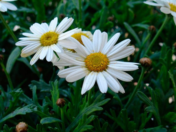 - Бетховен. Кущики цвітуть дуже рясно, а їх висота близько 50 див. Суцвіття прості, зовні схожі з ромашкою.