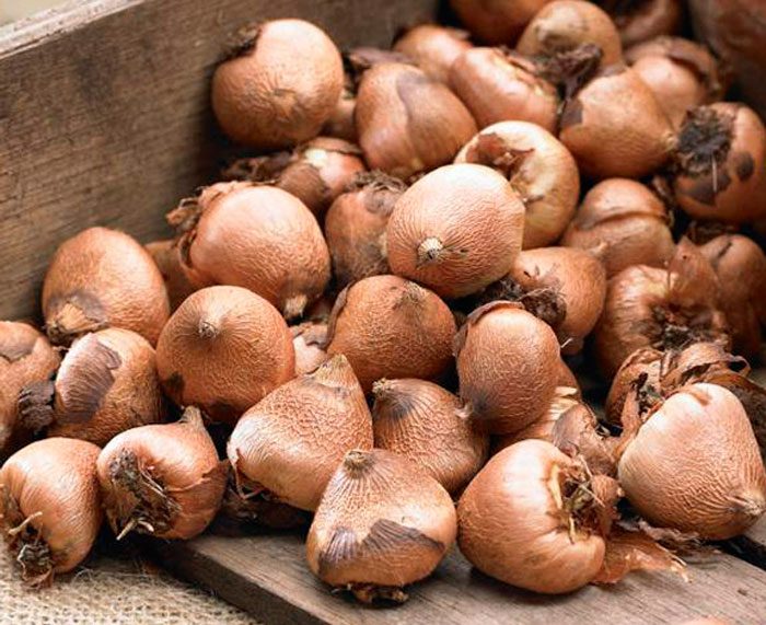 Як зберегти цибулинки? Викопані цибулини потрібно гарненько просушити, для цього їх протягом 4 тижнів містять при температурі близько 20 градусів. Потім з них видаляють пошкоджені гниллю лусочки, коріння, а після замочують у розчині фунгіцидної препарату і просушують. Підготовлений посадковий матеріал на зберігання необхідно скласти в пакети з паперу або в коробки з картону з перфорацією для вільного доступу свіжого повітря. Їх зберігають при температурі від 15 до 16 градусів до настання весняного періоду. Якщо в приміщенні буде прохолодніше, то цибулинки поринуть в стан спокою, а якщо тепліше ― то клубнелуковички почнуть проростати набагато раніше, ніж це необхідно. На вигонку цибулини саджають у березні, а якщо в регіоні порівняно теплий клімат, то тоді в останні дні квітня їх висаджують безпосередньо у відкритий грунт.