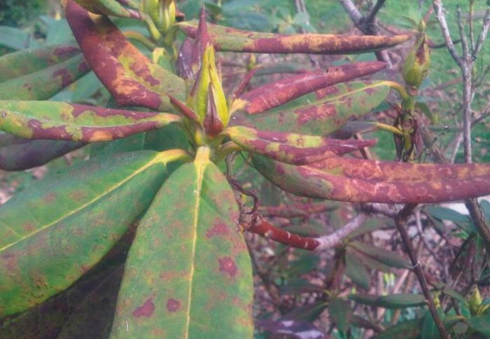 Найбільш часто така рослина хворіє грибковими хворобами, наприклад: рак, іржа, хлороз або плямистість листя. Найчастіше такі хвороби розвиваються в результаті недостатньої аерації кореневої системи. При ураженні іржею і плямистістю кущ необхідно обприскати мідьвмісними препаратами, наприклад, бордоською сумішшю. При захворюванні хлорозом кущик змінює свій колір на жовтий, в цьому випадку у воду для поливу необхідно всипати хелат заліза. Якщо рододендрон хворий на рак, то необхідно уражені стебла або обрізати до здорової тканини, або видаляти. В цілях профілактики на початку весняного періоду і глибокої восени кущі треба обприскувати бордоською сумішшю.