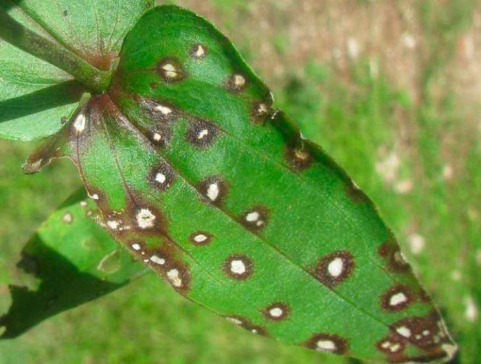 Огляньте кущ. Якщо ви знайдете хоча б одну листову пластину, на поверхні якої будуть знаходитися коричнево-сірі круглі цятки, то це означає, що рослина уражена бактеріальною плямистістю. Дана хвороба є невиліковною. Якщо зараження несильно, то можна спробувати просто обірвати всі уражені листові пластини. Якщо ж захворювання вже запущено, то кущик треба якнайшвидше викопати і спалити.