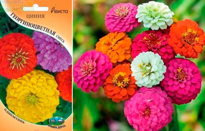 - Цінія суперкактусоцветная. Висота куща близько 0,6 м. Суцвіття такі ж, як у цинії кактусоцветной.
