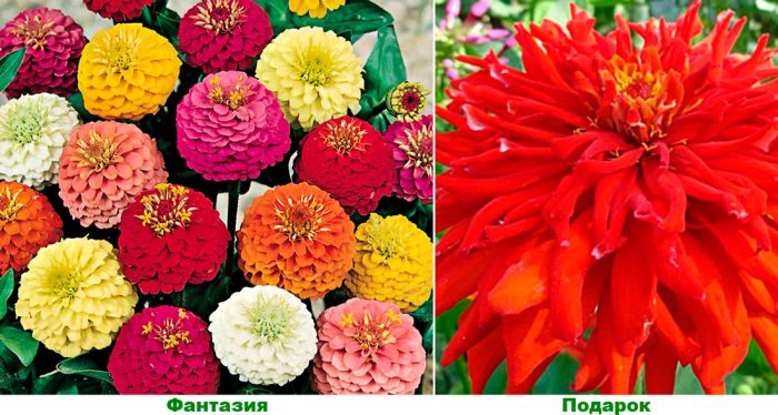- Фантазія ― висота куща близько 0,6 м, нещільні махрові суцвіття в діаметрі досягають 10 сантиметрів, вони можуть володіти різним забарвленням, наприклад: червоним, пурпурним, рожевим, лососевим, фіолетовим, насичено-жовтим, оранжево-червоним, білим і т. д;