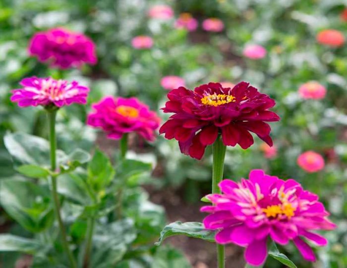 - цінія середня висота стебел від 0,35 до 0,5 метрів, вирощують на клумбах, а також використовують і для зрізання;