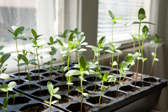 Перш ніж приступати до висіву, насіння слід підготувати. Для цього їх загортають у марлю або ганчірку, яка добре зволожений розчином Епін. Це допоможе відокремити сходження насіння від невсхожіх. Якщо свіжозібране насіння, то вони проклюнуться дуже швидко (приблизно через дві доби). При цьому старим насінню на це знадобиться близько 7 днів. В останні дні березня або перші ― квітня ті насіння, які опинилися всхожими, необхідно висіяти в торф'яні горщики, заповнені зволоженим почвосмесью, по 2 або 3 штуки, при цьому їх потрібно заглиблювати у субстрат всього на 10 мм. Слід пам'ятати, що ця рослина вкрай негативно реагує на пікіровку, саме тому для висіву насіння рекомендується використовувати індивідуальні горщики. Після того як насіння будуть висіяні, поверхню субстрату необхідно зволожити. Потім ємності переносять в добре освітлене і тепле (від 22 до 24 градусів) місце. Якщо насіння будуть висіяні з дотриманням всіх рекомендацій, то перші сіянці повинні будуть здатися вже через кілька діб.
