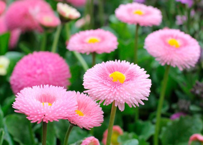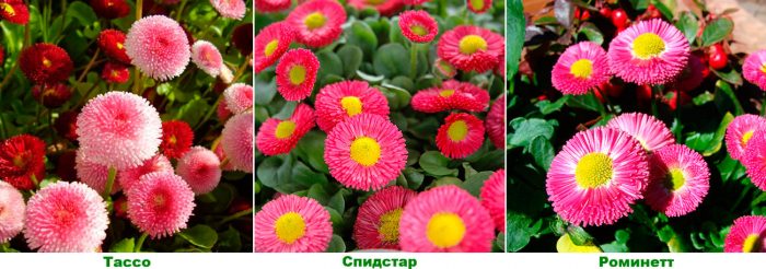 - Белла Дейзі. Цей раноцветущий сорт так само був удостоєний нагороди «Флероселект». В поперечнику махрова кошик досягає 20-25 мм, вона має насичено-рожевим забарвленням.