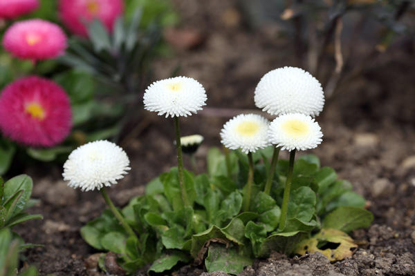 Виростити маргаритки не так вже й складно. Їх потрібно лише вчасно поливати, прополювати, підгодовувати і рихлити поверхню грунту. Система коренів у даних рослин неглибока, тому поливати їх слід систематично. Якщо маргариткам буде не вистачати води, то відбудеться мельчание суцвіть, при цьому махрові сорти втратять дане якість. Коли квіти политі, необхідно акуратно розпушити поверхню грунту навколо кущиків, що дозволить поліпшити аерацію кореневої системи. Щоб значно скоротити кількість поливів, прополок і розпушування, після того, як розсада буде висаджена, поверхня ділянки слід засипати шаром мульчі. Також наявність мульчуючого шару допоможе уникнути випирання системи коренів, що відбувається із-за підсихання верхнього шару грунту.