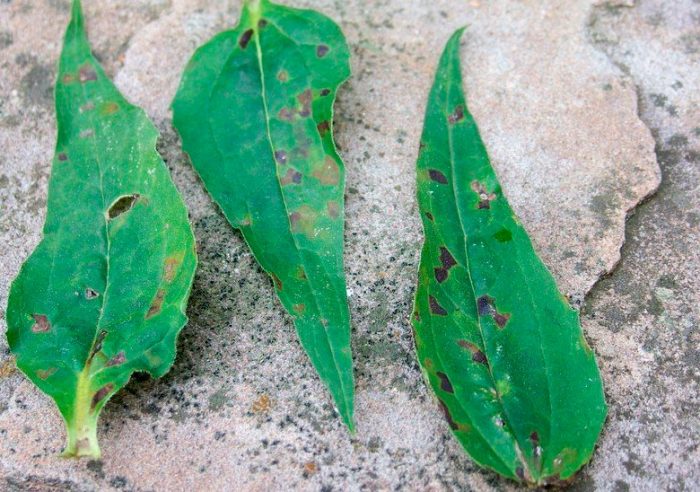 Також даний квітка може захворіти церкоспорозом і септоріозом, які так само є грибковими хворобами. У ураженої кущика на листових пластинках утворюються плями, які послаблюють його і поступово рослина гине. Якщо хвороба знаходиться на початковій стадії розвитку, то достатньо буде обрізати всі уражені частини кущика. Якщо ж хвороба вже запущена, то ехінацею потрібно обприскати фунгіцидним препаратом.