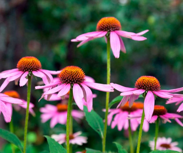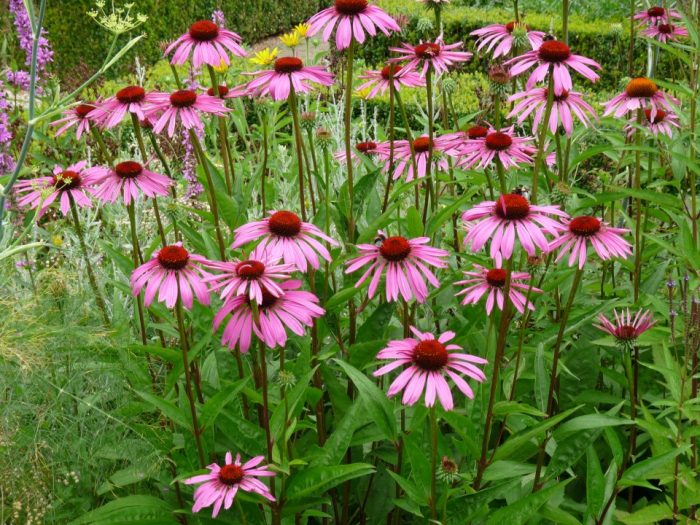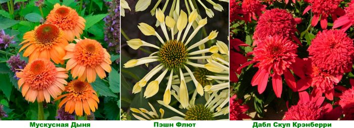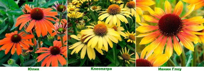 В диких умовах можна зустріти 9 різних видів ехінацеї, але при цьому садівниками культивуються найчастіше гібриди і сорти ехінацеї пурпурової.