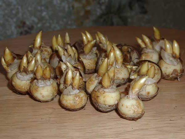 Відцвілі цибулинки викидати не потрібно. Їм забезпечують регулярний полив і підгодівлю слабким розчином комплексних мінеральних добрив для кімнатних рослин. Після того як листя почне змінювати свій колір на жовтий, виробляють поступове скорочення поливу до повного припинення. Коли листя повністю усохне, цибулинки слід витягнути з ємності. Коли з них будуть прибрані залишки субстрату, їх слід обернути серветками і скласти в коробку з картону. Посадковий матеріал забирають в темне, сухе місце, де він буде зберігатися до висадки у відкритий грунт в осінній час.