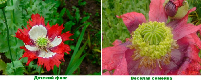 - Датський прапор. У висоту кущ досягає 0,75 м. Так сорт був названий завдяки не зовсім звичайного забарвлення: на червоному тлі розташовується хрест білого кольору, пелюстки по крайці бахромчаті. Отцветшее рослина зберігає свою ефектність завдяки дуже красивим насінних коробочок.
