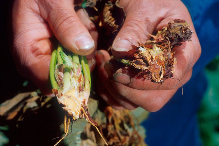 Якщо рослина заражене альтернаріозом, то на поверхні коробочок і листових пластин утворюється плямистий наліт оливкового забарвлення. Дана хвороба теж є грибкової. Хворий примірник потрібно обприскати Купроксатом, Фундазолом, бордоською рідиною або Оксихлоридом.