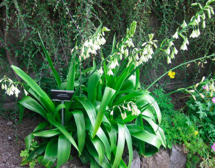 Це багаторічна рослина заввишки не перевищує 150 сантиметрів. Діаметр цибулин близько 7 сантиметрів, їх покриває велику кількість сухих плівчастих лусочок. Прикореневі листові пластини темно-зеленого забарвлення є жолобчастими ремневідной і лінійними, на одному кущі їх зростає 4-6 штук. Довжина листя 0,9 м, а їх ширина ― 8 сантиметрів. Зовні вони схожі з листям гіацинта. Гроновидні суцвіття складаються з трубчасто-воронковидних поникающих ароматних квіток білого забарвлення, довжина яких 60 мм, а діаметр ― 30 мм. Цвітіння спостерігається в серпні і вересні. Плід представляє собою тригранну коробочку з насінням.