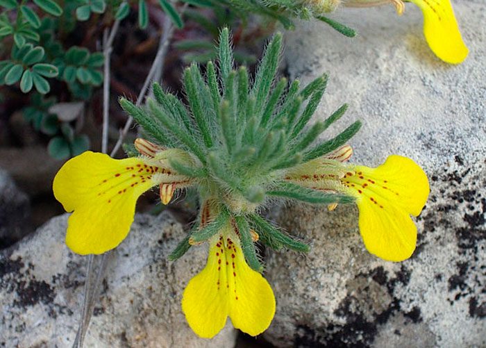 В диких умовах цей вид зустрічається на Кавказі, в Ірані, Середземномор'ї і Малій Азії. Така живучка воліє рости на скелях, по узбіччях доріг, в степах і на осипах. Висота такого багаторічного рослини не перевищує 20 сантиметрів. Розгалужені у підстави втечі можуть бути прямостоячими або піднімаються, на їх поверхні є довгий ворс білого кольору. На поверхні стеблових трехраздельных листових пластин є опушення. Нижні листові пластини лопатоподібні, цільні або трехзубчатые у верхній частині. Суцвіття ложноколосовидной форми розташовуються на кінцях пагонів і сформовані з одного пазушного квітки або цілого пучка. На зовнішній поверхні жовтих квіток є щільне опушення на нижній губі розташовуються цятки і штришками пурпурного кольору. Такий вид живучки має ранозагоювальний ефект.